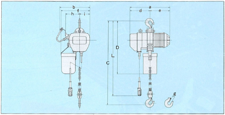 | 種類(呼び) (t) | フック間 最小距離 :C | D | a | b | d | e | f | g | h | i |