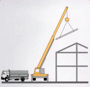 両方のフックが互いに逆方向に動作するツルベ構造。長尺資材も安全に反転します。